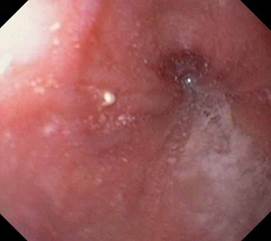 Больной С., 52 лет, обратился к гастроэнтерологу в поликлинику по месту жительства с жалобами на затруднение глотания на уровне нижней трети грудины, при приеме любой пищи, но преимущественно свежих фруктов, хлеба и кисломолочных продуктов. Проглатывание пищи облегчается после предварительной задержки дыхания. Нарушение глотания впервые возникло более 2 лет назад, однако оно значительно усилилось около месяца назад наряду с появлением неприятного запаха изо рта, слюнотечения, жжения за грудиной после еды. Ранее за медицинской помощью не обращался, не обследовался. Объективно: Кожные покровы обычной окраски, чистые. АД 125/85 мм. рт.ст. Пульс 74 удара в минуту, ритмичный. Тоны сердца слегка приглушены, ритмичные. В легких без патологии. Язык влажный, слегка обложен беловатым налетом. Живот мягкий, при пальпации умеренно болезненный в эпигастрии. Печень по краю правой реберной дуги, край ровный, при пальпации безболезненный. Стул, со слов больного, без особенностей. Больному выполнено рентгенологическое исследование пищевода с контрастированием сульфатом бария и эзофагогастродуоденоскопия. После проведения эндоскопического исследования пациент обратил внимание на уменьшение дисфагии, сохранявшееся в течение нескольких дней.