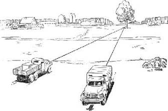 Переправившись, первый автомобиль с помощью того же троса буксирует второй автомобиль. Таким же образом на труднопроходимой переправе можно перетащить прицеп. При переправе колонной автомобили могут преодолевать брод, сцепившись друг с другом в виде поезда (рис. 15). Для сцепки лучше использовать жесткие буксиры. В случае заливания электрооборудования двигателя водой и невозможности его пуска, а также отсутствия автомобилей, могущих оказать помощь, можно в крайнем случае при хорошем состоянии аккумулятора попробовать выйти из воды или максимально приблизиться к берегу (выйти на мелкое место) при помощи стартера. Для этого необходимо включить первую передачу в раздаточной коробке и первую передачу или задний ход в коробке передач (в зависимости от направления движения). После применения такого способа преодоления брода необходима замена масла в двигателе, просушка всего электрооборудования и другие профилактические работы. Степень разрядки аккумулятора может быть очень значительной.
