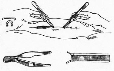 Наложение одиночных швов с помощью металлических скобок Мишеля показано на рис.46.