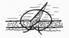 Отдельный краевой однорядный серозно-мышечно-подсли-зистый шов с узелком, расположенным на серозной оболочке. При завязывании узла соприкасаются однородные ткани. Иглу вкалывают со стороны серозной оболочки и выкалывают на поверхности разреза стенки кишки между подслизистым слоем и слизистой оболочкой и подслизистым слоем другого края раны и выкалывают на серозной поверхности. При этом в шов захватывают серозную и мышечную оболочки, а также подслизистый слой, который обладает наибольшей механической прочностью.