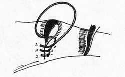 При ушивании ложа желчного пузыря удобнее пользоваться непрерывным захлестывающим швом (рис.99). При наложении шва печени целесообразно использовать рассасывающиеся нити и атравматические иглы.