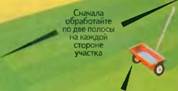 Колесный распределитель более эффективен и способен более ровно распределить удобрения по поверхности газона. Однако при небрежной работе возникает эффект «трамвайной линии», когда некоторые полосы получают двойную порцию удобрения, а другие участки остаются необработанными. После внесения удобрения очистите распределитель — намокшие удобрения могут вызвать коррозию металла. НЕПРАВИЛЬНО Двойная порция удобрения Необработанные участки Л
