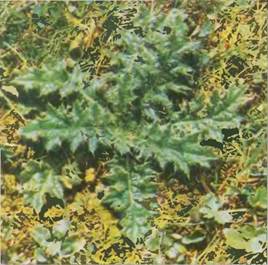 Обычно сорняк исчезает при регулярной стрижке газона. Оставшиеся сорняки можно уничтожить, обработав газон гербицидом избирательного действия, содержащим такие вещества, как дикамба или мекопроп. Достаточно однократного применения препарата в период активного роста растений ЧЕРТОПОЛОХ Чертополохи атакуют садоводов и огородников, но на газонах они встречаются нечасто. Редкое растение может выдержать регулярную стрижку, и хотя наиболее распространенный сорняк из этой группы, бодяк полевой, сильно разрастается на новом газоне, он выпадает по мере того как газон начинают регулярно стричь. Только один вид чертополоха способен выдержать регулярную стрижку — это чертополох бесстебельный: он образует розетку листьев, в середине которой растет цветок.