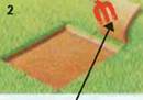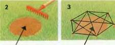 1 ЗАМЕНА ДЕРНА 0) / Вырежьте квадратный кусок дерна с погибшим участком. Разрыхлите поверхность почвы садовой вилкой. 1 ПЕРЕСЕВ 'Иг". г Садовой вилкои или вилами разрыхлите поверхность пораженного участка.