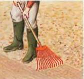 Два первых врага посевов — недостаток воды и птицы. Чтобы защитить семена от высыхания, частично заделайте их в почву веерными граблями. Не пытайтесь полностью закопать их, иначе всходы будут неравномерными. Раньше рекомендовали после посева уплотнить газон катком. Не делайте этого. Птицы представляют более серьезную проблему. Они не будут склевывать семена, протравленные репеллентами, но не перестанут купаться в пыли на газоне. С этим можно бороться, натянув над газоном крест- накрест на высоте 7—10 см черную нитку. При выполнении этой работы подложите под ноги доску — не стойте на засеянном газоне.