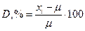 пример 9. Рассчитайте дисперсию и стандартное отклонение (абсолютное и относительное) выборки из примера 4. Решение. Воспользуемся величинами единичных отклонений, уже рассчитанными в примере 4: