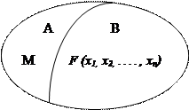 Слова «для любого х» кратко обозначают символом Высказывание Например, [( Например, если М = {4, 8, 10}, Р (х) ― «х делится на 2», то ( Высказывание ( Квантор существования обобщает логическую операцию «дизъюнкция» на бесконечном множестве. Если М={ а1, а2,..., аn,... }, то ( Важно подчеркнуть, что истинность ( Пусть теперь дана высказывательная форма (предикат), например, от трех переменных: F(х, у, z) ⇔ (х+y=z). Тогда ( Это предложение не зависит от переменных х и у, а зависит только от z, то есть является одноместным предикатом F(z). Если на n- местный предикат F(х1, х2, ...., хn) навесить квантор Для того, чтобы, из n- местного предиката получить высказывание, необходимо на все переменные навесить кванторы, или иначе говорят «связать их кванторами».