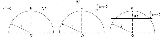 Делительная прямая исходного контура и делительная окружность заготовки зубчатого колеса могут иметь различное взаимное расположение. Смещение обычно выражается в долях модуля xm, где x - коэффициент смещения исходного контура. Возможны три случая относительного расположения делительной прямой и делительной окружности радиуса r.(рис.10.3). 1. Делительная прямая располагается на расстоянии от оси колеса, большем чем его радиус r. Зубчатые колеса, изготовленные при таком условии, называются положительными. 2. Делительная прямая касается делительной окружности, х=0. Зубчатые колеса, получаемые при этом, называются нулевые. 3. Делительная прямая располагается на расстоянии от оси колеса, меньшем, чем его радиус r. Зубчатые колеса, получаемые при этом называются отрицательные.