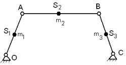В практике машиностроения при уравновешивании механизмов указанные условия выполняются только частично, в зависимости от конкретно поставленной задачи. Специальные мероприятия, выполняемые при проектировании механизма и ставящие своей целью достичь условия (7.1) представляют собой статическое уравновешивание механизма. Поскольку 1.Рассмотрим метод заменяющих масс. Уравновесим силы инерции шарнирного четырехзвенника.