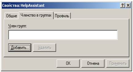 Рис.4. Окно принадлежности пользователя группам пользователей