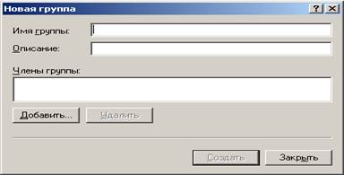 Новой возможностью данного меню является команда Создать группу. После ее выбора на экране появится диалоговое окно создания новой группы пользователей (рис.19.).