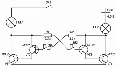 Хід роботи 1. Згідно свого варіанту вибрати принципову електричну схему. 2. З довідникової літератури по ЕРЕ, вибрати і зобразити геометричні розміри всіх радіоелементів PEА, які використані у принциповій електричній схемі. 3. Провести компонований розрахунок блоків РЕА(теоретичні відомості пункт 2) 4. Виходячи з принципу модельної компоновки PEА на ДП провести трасування друкованих провідників відповідно до електричних зв’язків на принциповій електричній схемі і вибрати габаритні розміри ДП згідно діючих стандартів (теоретичні відомості пункт 5). 5. Накреслити з вибраним кроком координатної сітки вигляд змонтованого виробу в двох проекціях - зверху і збоку, вказати назву ЕРЕ і розміри ДП на аркуші або міліметровому папері формату А4 з кутовим штампом розміром 185 Х 55 мм. (Аналогічно до рисунку 1). 6. Показати таблицю умовних позначень діаметрів монтажних отворів, які використовуються на кресленні ДП (теоретичні відомості таблиця 5), а також вказати надписи на кресленні ДП (теоретичні відомості пункт 6). 7. Розробити специфікацію елементів. 8. Зробити висновок. Завдання практичної роботи Виконати трасування друкованих провідників відповідно до електричних зв’язків на принциповій електричній схемі.