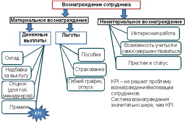 KPI – часть системы вознаграждения сотрудников На рисунке 33 представлена структура вознаграждения сотрудника и обозначено место KPI в ней.