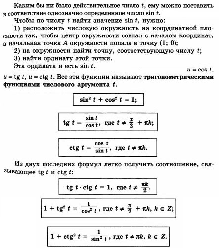 БИЛЕТ 7 Тригонометрические функции числового аргумента, соотношения их связывающие.