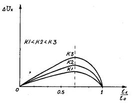 Рис. 5.5. Зависимость абсолютной погрешности от положения ползунка потенциометрического преобразователя при различных значениях коэффициента нагрузки. 2. Относительная погрешность.