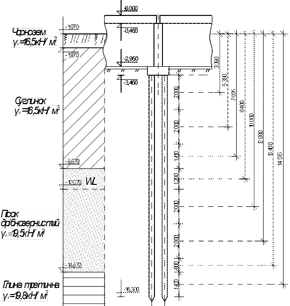 Знайдемо усереднене значення питомої ваги грунту від поверхні до глибини закладання паль: