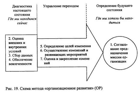 Схема ОР основана на рассмотрении процесса изменения последовательно в трех состояниях: будущем (первое состояние), настоящем (второе состояние) и переходном (третье состояние) (см. рис. 19). Будущее состояние формулируется как видение или миссия организации и фиксируется в письменной форме с указанием промежуточных целей (карта будущего), а в дальнейшем в случае необходимости уточняется. Настоящее состояние - описание и анализ внутренней и внешней среды организации, в том числе ее способностей и потенциала, политической структуры и политической ситуации, ресурсного обеспечения, сдерживающих и движущих сил и т.д. Переходное состояние конкретизирует содержание изменения, его уровни, цели, развивающие изменения мероприятия, при этом осуществляется мониторинг и контроль за ходом проведения изменений. Три состояния процесса ОР могут быть представлены в виде семи последовательных этапов (см. рис. 19): 1) согласование миссии организации; 2) оценка внутренних и внешних условий; 3) сбор данных; 4) обеспечение вовлеченности; 5) определение целей изменений; 6) осуществление изменений и развивающих их мероприятий; 7) оценка и закрепление изменений; где п. 1 соответствует будущему состоянию, п. 2, 3, 4 - настоящему, п. 5, 6, 7 - переходному. Как и сама технология ОР в целом, так и ее состояния и этапы представляют собой особый подход к принятию решений. Этот подход основан на организации эффективной коммуникации участников и на неформальных дискуссиях, при этом организация рассматривается как живая система с профессиональной (формальной) и политической (неформальной) структурами, в которых ее члены действуют одновременно в рациональных и иррациональных системах, уверенные в успехе и способностях людей и в их мотивации к изменениям. Хотя СТВ и ОР различаются, в процессах формирования и реализации многих программ можно комбинировать различные фрагменты этих технологий. Другим примером простой и эффективной технологии принятия решений, которая может использоваться как автономно, так и в комбинации с другими подходами и методами, является методология «мягких» систем (ММС). ММС - непосредственное воплощение третьей парадигмы в виде собственной методологии принятия решений. В отличие от «жестких», «мягкие» системы рассматривают человека как важнейший и неотъемлемый компонент системы, который структурирует ее своей деятельностью, но в то же время и сам меняется в процессе своей деятельности.