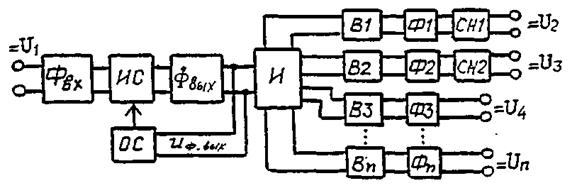 Рис. 9.9. Структурная схема ДППН с централизованной стабилизацией на основе импульсного стабилизатора в общей силовой цепи
