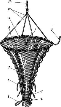 грузило; 7 — пожнлина|; о — хрестовина; 9 — обруч; 10 — стропи;