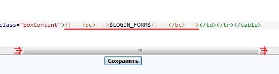 Передвиньте горизонтальную прокрутку вправо до места, где стоит код <! -- < bc> --> $LOGIN_FORM$<! -- < /bc> -->: