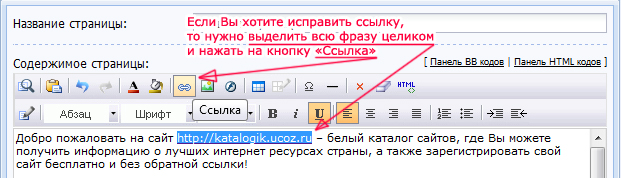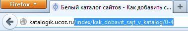 Теперь давайте сделаем ссылку в заголовке «Как добавить сайт в каталог». В предыдущих уроках мы создали уже данную страницу. Зайдите на наш сайт и перейдите в раздел «Как добавить сайт». В верхней строке браузера указана ссылка, которую нам нужно скопировать и указать в заголовке.