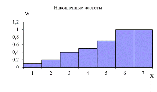 Используя данные таблицы 2, построим гистограмму накопленных частот для контрольной группы X (рис. 3).
