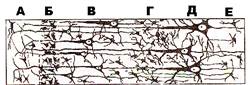 26. Ү лкен ми қ ыртысының А ә ріпімен белгіленген қ абаты: a. молекулярлы b. сыртқ ы дә нді c. пирамидалы d. ішкі дә нді e. ганглионарлы 27. Ү лкен ми қ ыртысының Б ә ріпімен белгіленген қ абаты: a. молекулярлы b. сыртқ ы дә нді c. пирамидалы d. ішкі дә нді e. ганглионарлы 28. Ү лкен ми қ ыртысының В ә ріпімен белгіленген қ абаты: a. молекулярлы b. сыртқ ы дә нді c. пирамидалы d. ішкі дә нді e. ганглионарлы 29. Ү лкен ми қ ыртысының Г ә ріпімен белгіленген қ абаты: a. молекулярлы b. сыртқ ы дә нді c. пирамидалы d. ішкі дә нді e. ганглионарлы 30. Ү лкен ми қ ыртысының Д ә ріпімен белгіленген қ абаты: a. молекулярлы b. сыртқ ы дә нді c. пирамидалы d. ішкі дә нді e. ганглионарлы 31. Ү лкен ми қ ыртысының Е ә ріпімен белгіленген қ абаты: a. полиморфты жасушалар қ абаты b. сыртқ ы дә нді c. пирамидалы d. ішкі дә нді e. ганглионарлы 32. Жұ лынның сұ р затындағ ы шоғ ырлы жасушалардың аксондарының ерекшеліктері: a. жұ лынның ақ затына ө теді b. алдың ғ ы тү біршекпен бірге жұ лыннан шығ ады c. жұ лынның ө з жағ ындағ ы сұ р затында аяқ талады d. жұ лынның қ арама-қ арсы жағ ындағ ы сұ р затында аяқ талады e. артқ ы тү біршекпен бірге жұ лынғ а кіреді