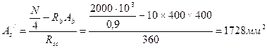 2. (Железобетонные конструкции). Эскизно скомпоновать и заармировать сечение центрально нагруженной железобетонной колонны первого этажа каркасного здания. Исходные данные: Здание пятиэтажное с неполным каркасом. Сетка колонн 6х7 м. Высота этажей 4м. Расчетная нагрузка на покрытие 5кПа. Расчетная нагрузка на перекрытие 10кПа. Решение: Принимаю квадратное сечение колонны 400х400мм; бетон тяжелый класса В20; Rb× gb2»10Н/мм2; продольная арматура кл.АIII Æ 12 мм и более; Rs=Rsc=360Н/мм2. Расчетная нагрузка на колонну 1-го этажа при грузовой площади 6х7=42м2 N=(5+10х4)х42+0, 4х0, 4х4х5х25х1, 1=1890+88=1978»2000кН. При