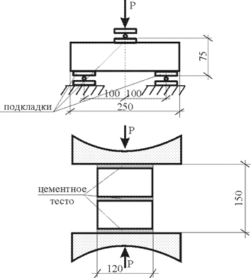 2. (Железобетонные конструкции). Какие испытания проводят при определении марки кирпича? Охарактеризуйте 1-ый случай работы сечения внецентренно сжатого элемента (случай больших эксцентриситетов). Укажите признаки, по которым устанавливается случай работы сечения сжатого элемента. Ответ: Прочность камней для каменной кладки обозначают марками, которые выражают прочность камня при сжатии с учетом прочности на изгиб. При проведении испытаний кирпичей вначале проводят испытание кирпича на изгиб по схеме показанной на рисунке, а за тем полученные половинки испытывают на сжатие, выровняв перед этим поверхности кирпича цементным тестом или войлоком, см. рисунок. . Схема испытания кирпичей при определении их марки.