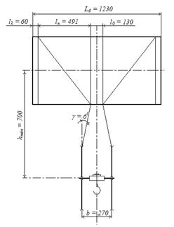 принимаем Максимальная длина среднего участка принимается из условия обеспечения нормального набегания каната при максимальном подъеме подвески (Рисунок 6).