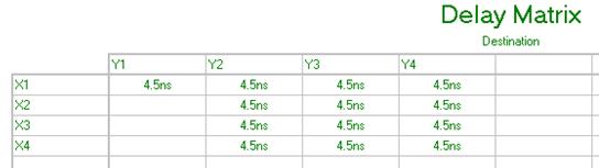 Рис. 6.37 Матрица временных задержек Программа: SUBDESIGN preobraz_dvoichno_desayt_v_dvoich (X[3..0]: INPUT; Y[3..0]: OUTPUT;) BEGIN IF X[3..0] < = B" 0100" THEN Y[3..0] = X[3..0]; ELSE Y[0]=X[0]; TABLE X[3..1] => Y[3..1] B" 101" => B" 010"; B" 110" => B" 011"; B" 111" => B" 100"; END TABLE; ENDIF; END;