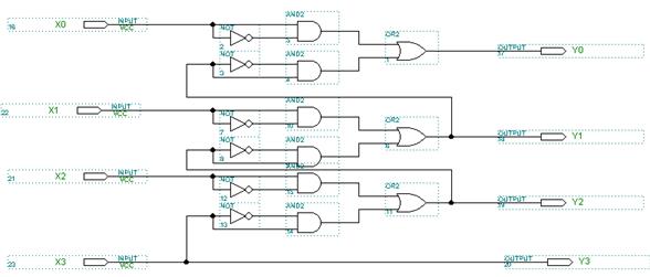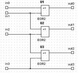 Рис. 6.40 Преобразователь двоичного кода в код Грея в пакете MAX+Plus II