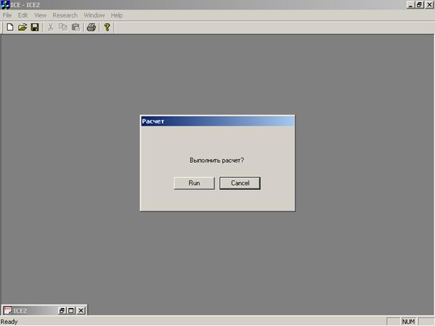 2. Расчет рабочего процесса выполняется нажатием кнопки «Run» в окне команды «Do» (Расчет) в меню «Research» (рис.1). При этом на завершение расчета уходит от десятков секунд до нескольких минут (зависит от быстродействия компьютера, его загруженности, а также времени интегрирования). После завершения расчета на жестком диске компьютера должны появиться текстовые файлы с именами: tab_0_1.txt; termo_0_1.txt; kinem_0_1.txt; time.txt(и файлы tab_1_1.txt; termo_1_1.txt; kinem_1_1.txt, если был задан вывод в два файла – см. п.30 в табл.1) и др. В этих файлах содержится вся необходимая информация для того, чтобы выполнить п.3. С этой целью используется математический пакет Mathcad, после входа в который нужно загрузить файлы dvs_2c.mcd или dvs_4c.mcd(входят в состав методического комплекса), в зависимости от числа цилиндров рассчитываемого ДВС. На рис.2 в качестве примера показаны различные графики для ВАЗ-1111, которые получаются при загрузке файла dvs_2c.mcd. Методика определения давления pb в момент открытия выпускного клапана показана на рис.2, б. Угол опережения открытия выпускного клапана, равный 50 град для ВАЗ-1111, откладывается влево от нижней мертвой точки (НМТ), и с помощью средств Mathcad определяется pb как ордината точки при абсциссе, равной 490 град. Соответствующее значение записывается в табл.3. Температура Тmax=2355K определена просто как максимальное значение на рис.2, в. На рис.3 приведен пример одного из диалоговых окон для ввода параметров ДВС.