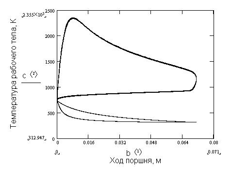 Рис.2, б. То же, при установке пределов для угла поворота вала от 480 до 600 град: давление в момент открытия выпускного клапана pb=0, 521 МПа