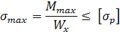 Если материал балки по разному работает на растяжение и сжатие и крайние волокна балки находятся на разном расстоянии от нейтрального слоя, то условие прочности: