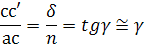 Величина сс'=δ – абсолютный сдвиг. Она зависит от расстояния между соседними сечениями чем она больше тем больше и сдвиг. Относительный сдвиг – угол γ, на который перекашиваются прямые углы элементарного параллелепипеда.