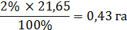 100% - 21, 65 га 2% - х га