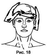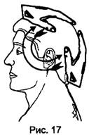 Позиция № 2, рис. 17 Меняем положение: ладонь одной руки располагается на теменной части, а другой ¾ на затылочной части головы. " Прокачка" головы потоком энергии осуществляется тем же способом, что и в позиции № 1.