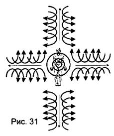 4. Законтактировать с центром и направить энергопоток по позвоночнику вверх до головы, после чего Ученик должен перевернуться на спину. Захватить энергопоток от головы, направить его поглаживающими движениями к центру в область пупка и вновь активизировать энергию " фонтанчиком". 5. Затем, активизируя энергию Ученика, Учитель поочерёдно как бы " растягивает" её по четырём направлениям: голова, левый бок, ноги, правый бок. Движения осуществляются по схеме, описанной в п.2 настоящего упражнения. 6. Далее, двигаясь по часовой стрелке, приглаживающими движениями рук Учитель старается сгармонизировать и уплотнить поле Ученика. В случае возникновения болевых или неприятных ощущений выполнение упражнения следует сократить или прекратить. По мере развития ощущений нагрузку Ученику увеличить.
