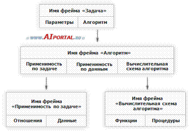 Понятие сценария введено Р. Шенком и Р. Абельсоном. Сценарии представляют собой однородные сети, в которых устанавливаются отношения нестрогого порядка с различной семантикой. Установленные отношения определяют возможные последовательности событий. Семантика отношений может быть: каузальной, временной, родо-видовой, часть-целое и др. Сценарии используются в псевдофизических логиках для проведения выводов. Сценарии могут быть простыми и иерархическими (вложенными). Сценарий – это фреймоподобная структура, в которой определены такие специальные слоты как сценарий, цель, сцена, роль. Сценарии, отражая причинно – следственные цепочки предметной области, имеют более развитую семантику в сравнении с " классическими" фреймами. Сценарии рассматриваются как средство представления проблемно-зависимых каузальных знаний. Каузальный - причинный, связанный с взаимообусловленностью событий во времени. Фреймы Фрейм — (англ. frame — «каркас» или «рамка») — способ представления знаний в искусственном интеллекте, представляющий собой схему действий в реальной ситуации. Первоначально термин «фрейм» ввёл Марвин Минский в 70-е годы XX века для обозначения структуры знаний для восприятия пространственных сцен. Фрейм — это модель абстрактного образа, минимально возможное описание сущности какого-либо объекта, явления, события, ситуации, процесса. Виды фреймов Различают фреймы-образцы, фреймы-экземпляры, фреймы-структуры, фреймы-роли, фреймы-сценарии, фреймы-ситуации. Система связанных фреймов может образовывать семантическую сеть. Применяются фреймы в экспертных системах и других интеллектуальных системах различного назначения. Структура фрейма Под структурой фрейма понимается способ использования схемы, типичной последовательности действий, ситуативная модификация фрейма. Фрейм, кроме всего прочего, включает определённое знание по умолчанию, которое называется презумпцией. Фрейм отличает наличие определённой структуры. Фрейм состоит из имени и отдельных единиц, называемых слотами. Он имеет однородную структуру: ИМЯ ФРЕЙМА Имя 1-го слота: значение 1-го слота Имя 2-го слота: значение 2-го слота ……………………………… Имя N -го слота: значение N -го слота[1]. В качестве значения слота может выступать имя другого фрейма. Таким образом фреймы объединяются в сеть. Свойства фреймов наследуются сверху вниз, то есть от вышестоящих к нижестоящим через так называемые АКО-связи. Слот с именем АКО указывает на имя фрейма более высокого уровня иерархии. Незаполненный фрейм называется протофреймом, а заполненный — экзофреймом. Роль протофрейма как оболочки в экзофрейме весьма важна. Эта оболочка позволяет осуществлять процедуру внутренней интерпретации, благодаря которой данные в памяти системы не безлики, а имеют вполне определенный, известный системе смысл. Слот может содержать не только конкретное значение, но и имя процедуры, позволяющей вычислить его по заданному алгоритму, а также одну или несколько продукций (эвристик), с помощью которых это значение определяется. В слот может входить не одно, а несколько значений. Иногда этот слот включает компонент, называемый фасетом, который задает диапазон или перечень его возможных значений. Фасет указывает также граничные значения заполнителя слота. Помимо конкретного значения в слоте могут храни