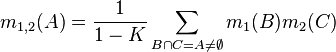 Из вышенаписанного следует, что достаточно знать хотя бы одну из мер (массу, доверие или правдоподобие), чтобы вычислить оставшиеся две. Рассмотрим проблему объединения двух независимых множеств приписанных масс. Исходное правило объединения известное как правило комбинации Демпстера (en: Dempster's rule of combination) является обобщением правила Байеса. Это правило придаёт особое значение согласию между многочисленными источниками и игнорирует все конфликтующие свидетельства с помощью нормализации. Правомерность использования этого правила подвергается серьёзным сомнениям в случае значительных несоответствий между источниками информации. Собственно, объединение (называемое присоединённая масса) вычисляется из двух множеств масс