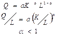 4. Долгосрочный период – существенно преодолеваем ограниченность некоторых видов ресурсов, либо можем изменить характеристику технологий. СТАНДАРТНАЯ ПРОИЗВОДСТВЕННАЯ ФУНКЦИЯ. В отличие от функции полезности, которая является в большей мере гипотетической, производственная функция является объективной характеристикой технологии и сравнительно легко поддается расчету, как для отдельного предприятия, так и для всей экономической системы. Существует два вида задания производственной функции: 1)Табличный – методом перебора измерений. Используется на практике. Перебираются все отношения труда и капитала.2)В виде формулы. Существует несколько способов записи: a) b) c) Функция Кобба–Дугласа (1929г.). Оба ученых рассматривали ВНП США за 30 лет(1850–1930гг.). За Q брали ВНП и смотрели K и L. Получилась формула: