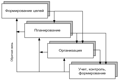 Структура управления обеспечивает выполнение общих и конкретных функций управления, сохраняет целесообразные вертикальные и горизонтальные связи и разделение элементов управления. Вертикальное разделение определяется числом уровней управления, а также их подчиненностью и директивными отношениями. Горизонтальное разделение осуществляется по отраслевым признакам. Управленческий цикл содержит в себе четыре функции: это планирование, организация, мотивация, контроль. Данные функции охватывают все виды управленческой деятельности по созданию материальных ценностей, финансированию, маркетингу и т. д. Планирование. Эта функция представляет собой по существу процесс подготовки решений. Этапы планирования: а) постановка целей и задач; б) определение исходных предпосылок; в) выявление альтернатив; г) выбор наилучшей альтернативы; д) ввод и исполнение плана. Организация. Функция организации нацелена на упорядочение деятельности менеджера и исполнителей. Прежде всего, это оценка менеджером своих возможностей, изучение подчиненных, определение потенциальных возможностей каждого работника, расстановка сил и т. д. Вся эта организаторская деятельность протекает на фоне проявления вполне конкретных структур предприятия. Мотивация. После проведения подготовительных мероприятий менеджер должен обеспечить успешное выполнение работы. В этих целях используются: а) стимулирование, т. е. побуждение работников к активной деятельности с помощью внешних факторов (материальное и моральное стимулирование); б) собственно мотивирование, т. е. создание у работников внутренних (психологических) побуждений к труду. Главными здесь являются: заинтересованность в труде, потребность в трудовой активности, переживание чувства удовлетворения от трудовой деятельности. Менеджер, чтобы успешно осуществить эту функцию управления, должен быть компетентен в различных аспектах коммуникации, он обязан развивать у себя соответствующие умения и навыки. Контроль. Эта функция, как говорил Г.Файоль, «состоит в подтверждении того, что все идет в соответствии с принятым планом, существующими директивными документами и принятыми принципами управления». Другими словами, контроль — это процесс проверки и сопоставления фактических результатов с заданиями. Круговорот управленческого цикла. Как известно, менеджер постоянно занят осуществлением управленческрхх функций. Если он хочет обеспечить будущее своему предприятию (организации), ему надо серьезно включаться во все детали управления. И начинать нужно с планирования. Каждый профессионал планирует свою работу: Если работа спланирована, то она должна быть организована, а работники подготовлены к целенаправленной деятельности. Они должны иметь четкую линию поведения и понимать, что их ждет впереди. Работники тянутся к детальному осознанию своей работы, они открываются для делового контроля своих производственных операций. Отсюда — необходимость в контроле. Довольно часто коррекция обеспечивается без каких-либо усилий: подчиненному достаточно услышать от руководителя какую-либо побудительную фразу или даже слово: «Так держать!», «Будь внимательней!» «Хорошо!» и т. д. Все это воздействует на эмоциональную сферу работника. Реакция работника здесь мгновенная. Значительно труднее осуществлять корр