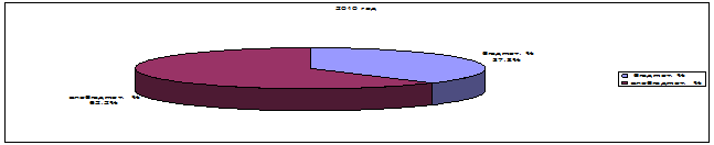 Рисунок 2.2 - Динамика поступления денежных средств УО БрГТУ за 2010-2012 гг Вывод: В анализируемом периоде наблюдается положительная динамика денежных средств университета, в которых средняя доля бюджетных доходов составляет 38.9 % от общей суммы денежных поступлений, при этом наблюдается ежегодное увеличение их удельного веса на 2.48 %. В то же время удельный вес поступлений от внебюджетной деятельности ежегодно сокращается в среднем на 1.56 %. Задание 3 На основе данных бухгалтерского баланса предприятия выполнить вертикальный анализ и разработать секторные диаграммы, характеризующие фактическую структуру на начало и конец анализируемого периода конкретных показателей согласно таблице вариантов (таблица 3.1) и заданию руководителя практики. Дополнительное задание: Рассчитать темпы динамики и абсолютный прирост (уменьшение) данного показателя и сделать вывод об изменении структуры анализируемого показателя в рассматриваемом и об его влиянии на производственно-хозяйственную деятельность предприятия. Пояснения к выполнению задания 3 Бухгалтерский баланс – это свод информации о стоимости имущества и обязательствах организации, представленный в табличной форме. Бухгалтерский баланс – важнейшая форма бухгалтерской отчетности (форма №1), по которой можно судить о финансовом состоянии предприятия, о том, каким имуществом оно обладает и сколько имеет долгов. Бухгалтерский баланс содержит данные по состоянию на определенную дату (начало и конец периода) Баланс включает Актив и Пассив, итоги которых равны. Актив Бухгалтерского баланса состоит из двух разделов: I. Внеоборотные (долгосрочные) активы (активы, которые используются более 1 года: оборудования, здания, нематериальные активы, долгосрочные вложения и т.п.); II. Оборотные (краткосрочные) активы (активы, которые используют менее 1 года: сырье, материалы, дебиторская задолженность, денежные средства и т.п.). Если Актив баланса показывает, каким имуществом владеет предприятие, то Пассив раскрывает источники формирования этого имущества. Пассив бухгалтерского баланса состоит из трех разделов: III. Капитал и резервы (собственный капитал); IV. Долгосрочные обязательства (займы, кредиты и прочая задолженность со сроком погашения более 1 года); V. Краткосрочные обязательства (текущая задолженность перед работниками, поставщиками и др. долги, подлежащие выплате в течение 1 года). Бухгалтерский баланс – основной источник информации для финансового анализа, определения устойчивости финансового положения предприятия и возможности его бесперебойной работы. Таблица 3.1 – Индивидуальные варианты к расчетно-аналитическому заданию 3