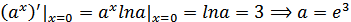 Первый промежуток не удовлетворяет условию a > 1. Значит Также возможен случай если в уравнении (1) прямая является касательной к графику показательной функции: