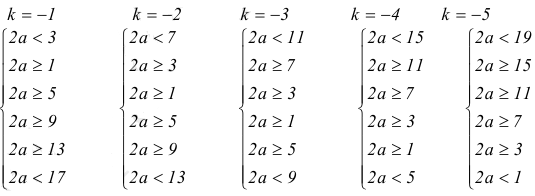 Т.к. k ∈ Z, то k = 0, − 1, − 2