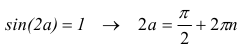 Если уравнение sin(a x) = 1 имеет два корня на отрезке [− π; π ], то и уравнение sin(a x) = − 1 тоже имеет там два корня при тех же значениях параметра. В этом легко убедиться: Для