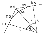 1. тангенс (T), 2. длину кривой (К), 3. биссектрису (Б), 4. домер (Д), НК = ВУ – Т КК = НК + К СК = НК + К/2
