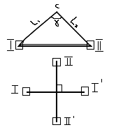 Створная. Сущность способа состоит в определении проектной точки на пересечении взаимно перпендикулярных визирных лучей по сторонам I-I’ и II-II’.