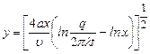 где t – время, отсчитываемое от момента, когда источник тепла пересек плоскость y00z0, в которой находится рассматриваемая точка; y0 , z0 – неподвижные координаты рассматриваемой точки. Применительно к рассматриваемым схемам можно аналитическим способом выразить связь между координатами точек изотермы определенной температуры. Заменив в формулах (5.1) и (5.2) ut на [- x ] и направление оси х на обратное, можно получить соответственно следующие уравнения поверхностных изотерм температурного поля быстродвижущихся точечного и линейного источников (без учета отдачи тепла поверхностью):